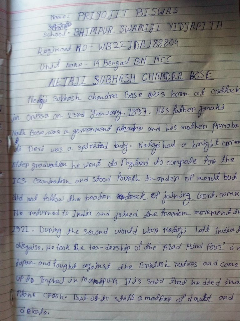 I am Cadet Kiran Kumar Roy from 31 bengal battalion