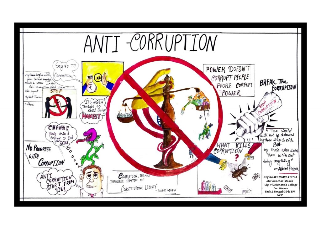 Reg.no-WB19SWA113734 SGT Sanchari Basak , Vivekananda College For Women from 2 Bengal Girls BN NCC.Kol-B. This drawing about stop corruption or anti corruption.