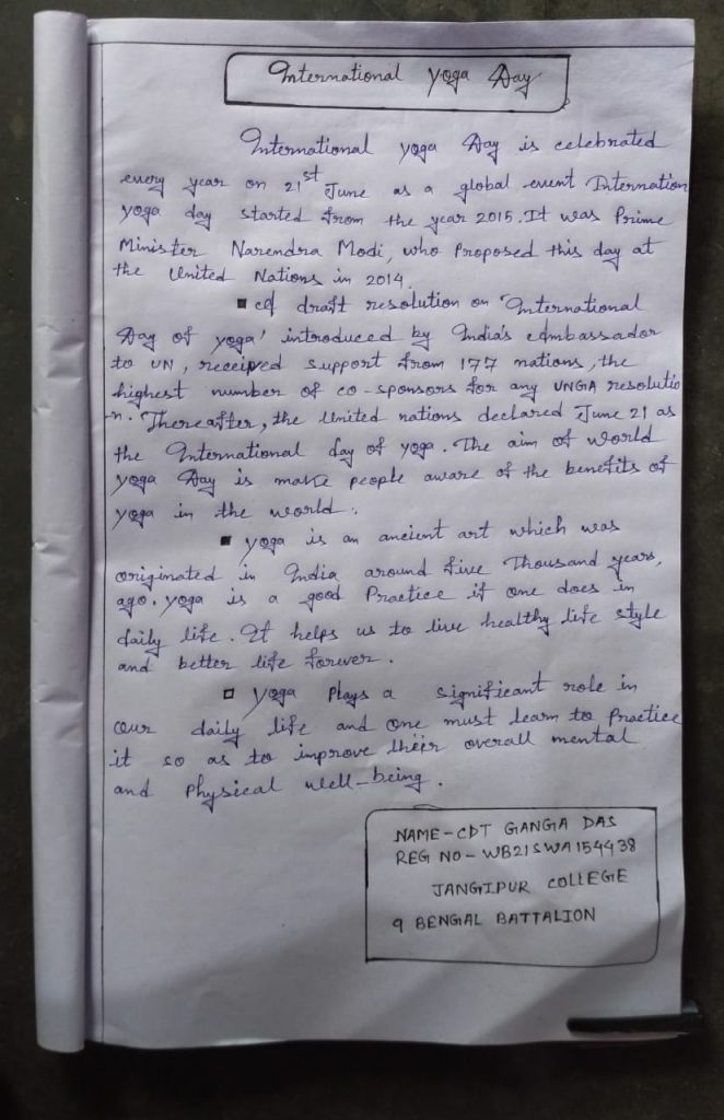 NAME -- CDT GANGA DAS COLLEGE NAME-- JANGIPUR COLLEGE UNIT-- 9 BENGAL BN NCC GROUP-- KALYNI GP DTE- WB &SIKKIM DTE