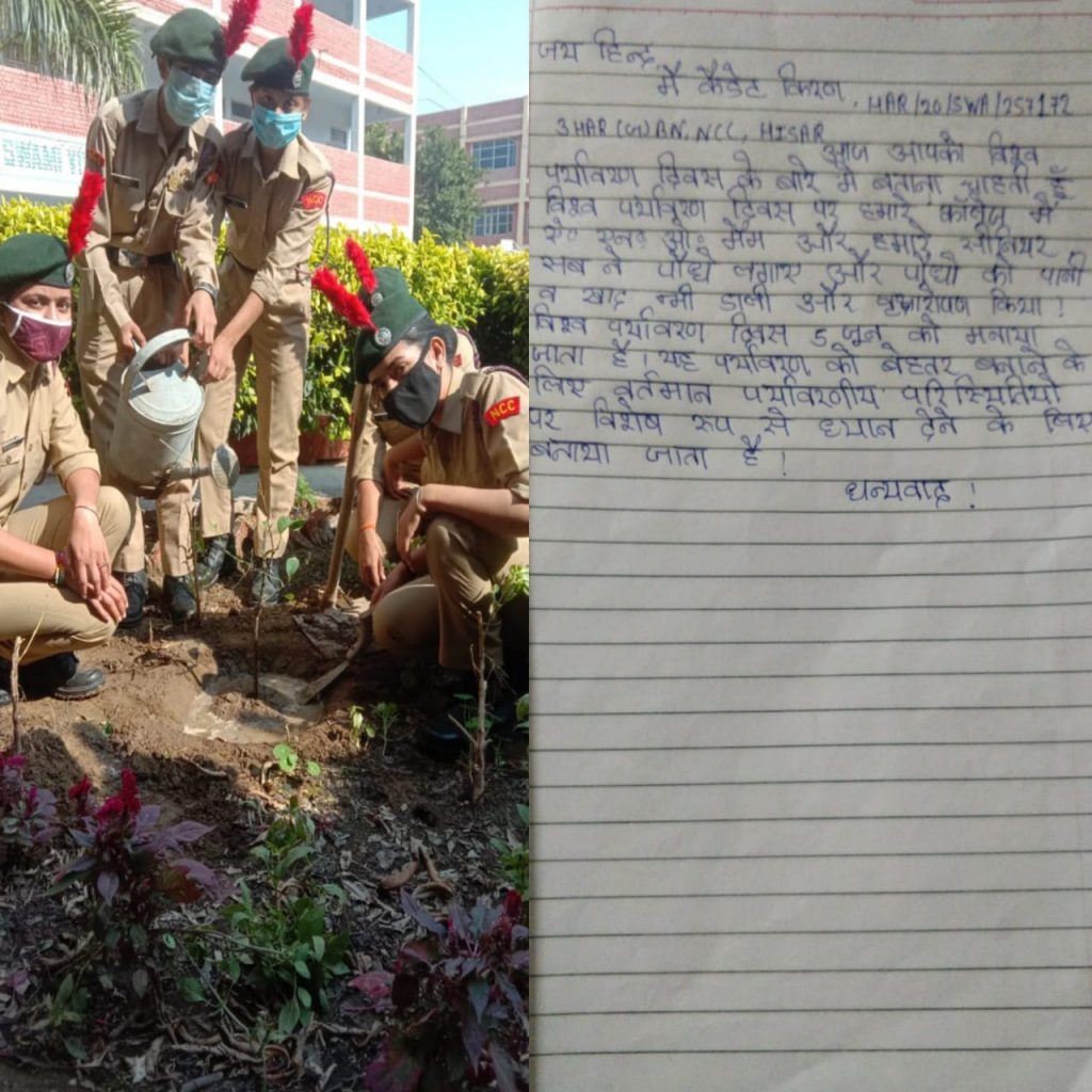 मै कैडेट किरण विश्व पर्यावरण दिवस 5 जून को मनाया जाता है