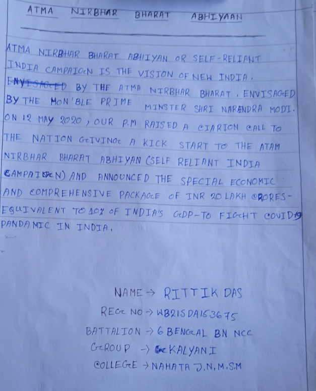 WB21SWA153108, CDT MANTI BISWAS, NAHATA JNMSM, 6 BENGAL BN NCC