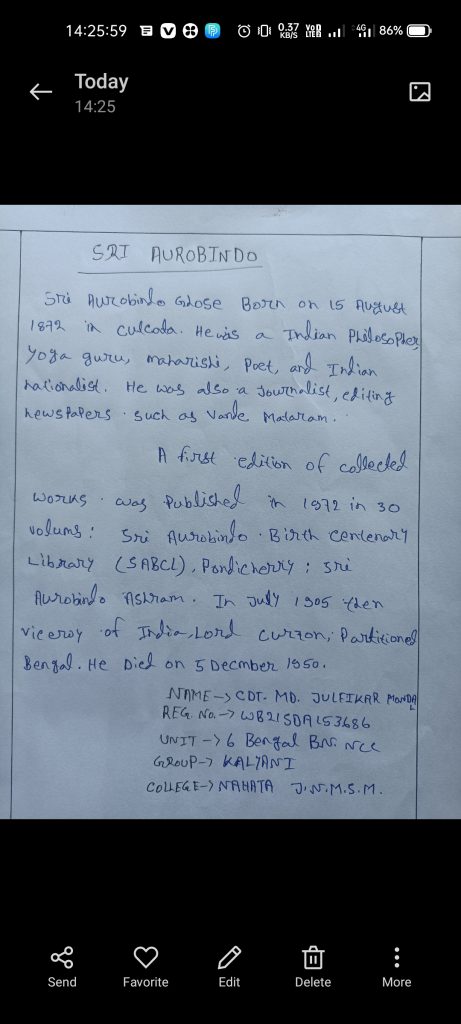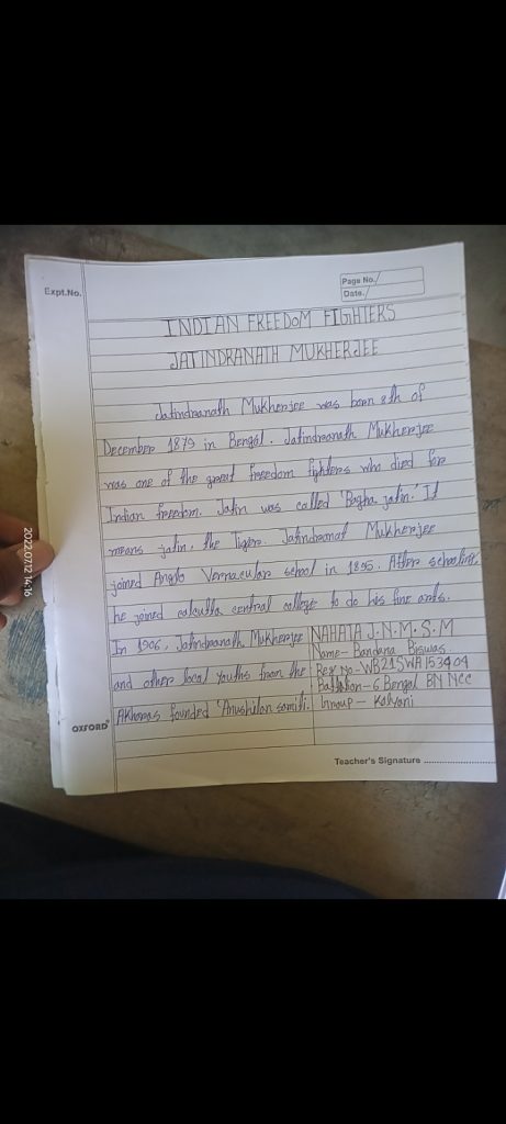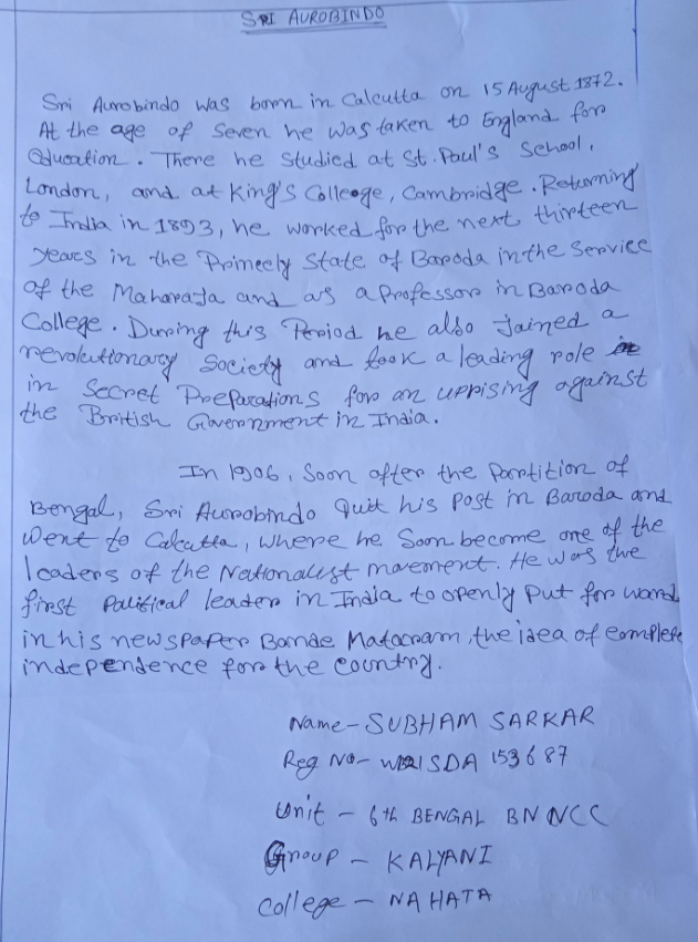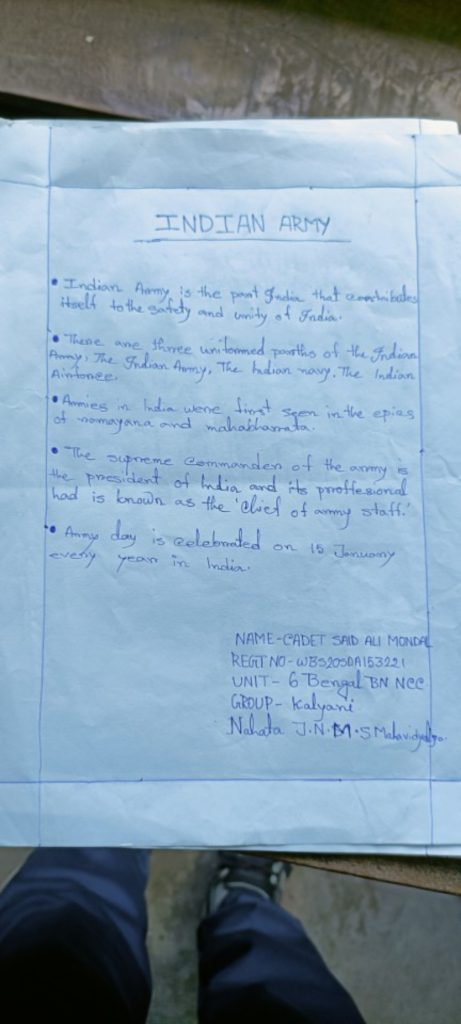 Subham sarkar WB21SDA153687 6 Bengal BN Ncc Nahata j.n.m.s.m. Kalyani