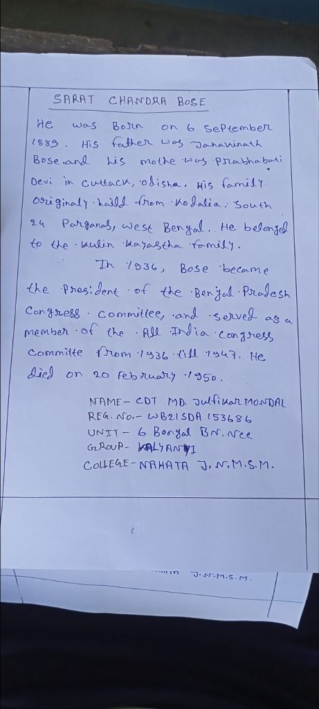MD. Julfikar mondal WB21SDA153686 6 Bengal BN NCC Kalyani Nahata J.N.M.S college