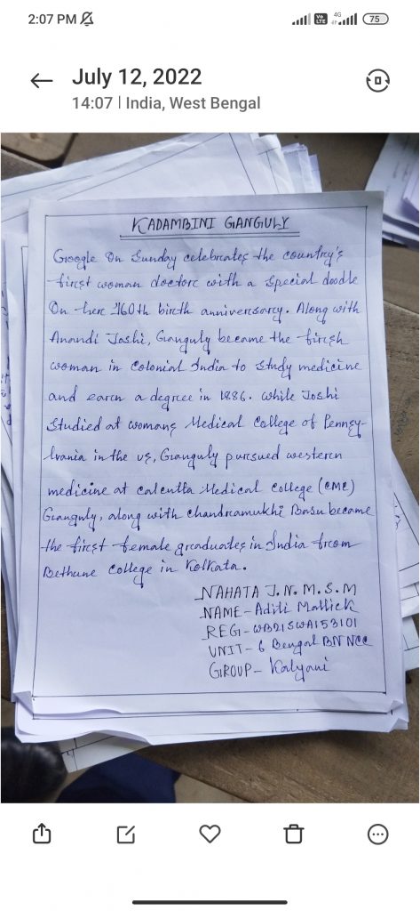 Nahata jnms mahavidyalay Name - aditi mallick Reg- wb21swa153101 Unit 6 bengal bn ncc Group-kalyani