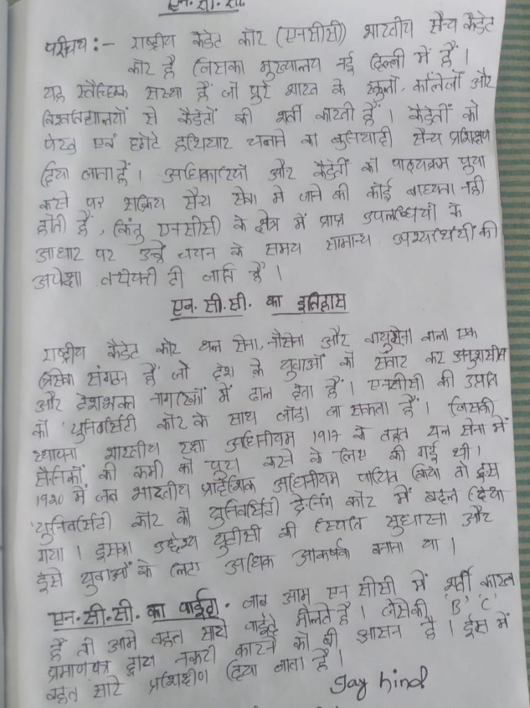 Payal Choudhary, B.A.1st year, NCC Cadet .