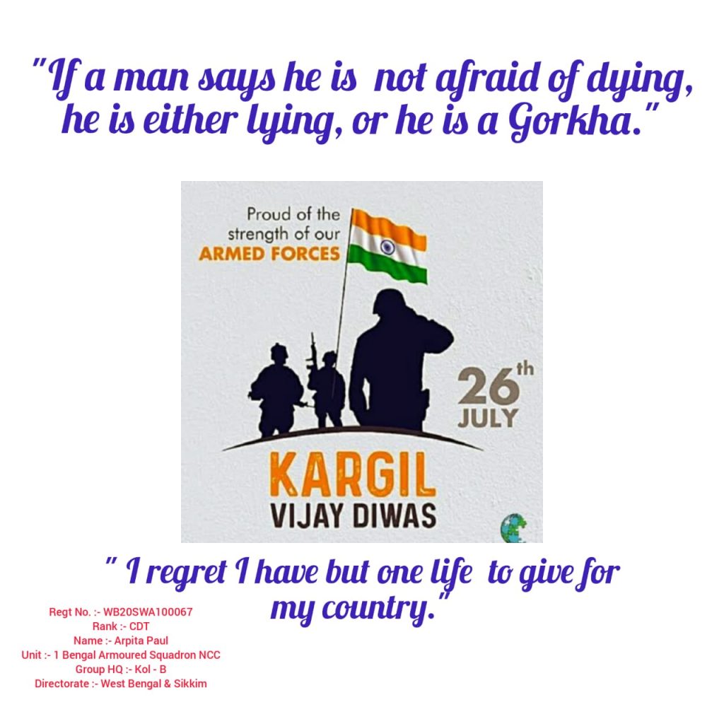 Jai Hind I'm CDT Arpita Paul from 1 Bengal armoured squadron NCC group-kol-B WB and SIKKIM directorate