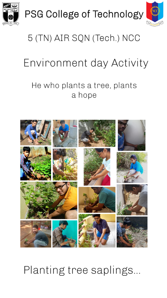 WE , THE NCC CADETS OF 5 TN AIR SQN HAD PLANTED TREE SAPLINGS ON JUNE 5.