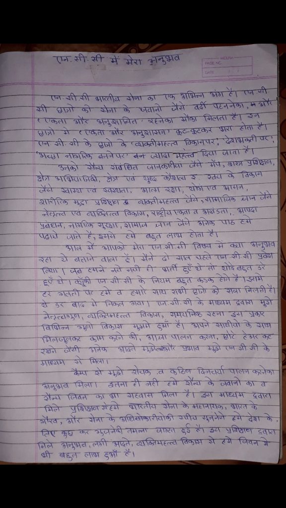 I,cadet Ankita of 3HAR(G) Bn NCC Hisar, shared my experience that I had with my seniors, kindly give it a read....