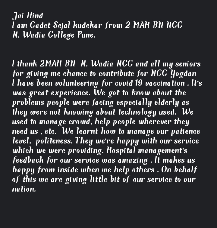 Cadet Ahire Nandkishor Bhikan MH 19 SD 404540. 48 MH BN Dhule