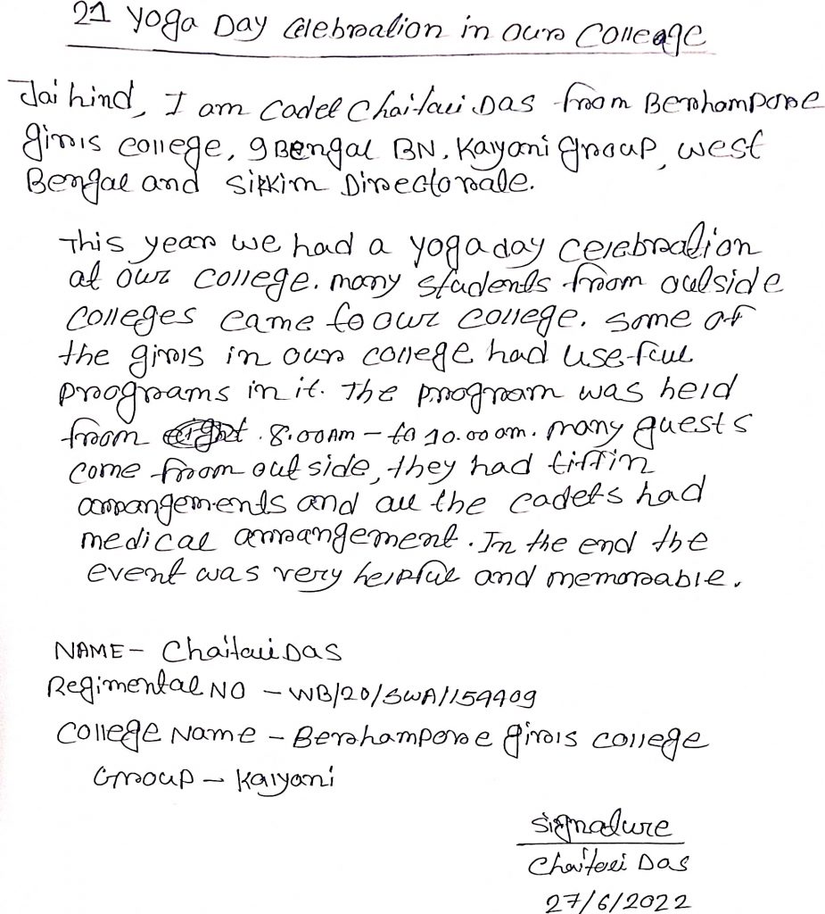 CDT CHAITALI DAS UNIT- 9 BENGAL BATTALION GROUP- KALYANI DIRECTORECT- WB&SIKKIM DIRECTORECT