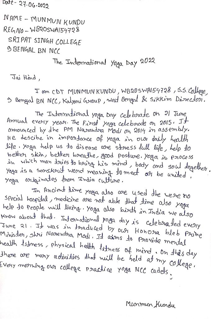 CDT MUMMUN KUNDU UNIT- 9 BENGAL BATTALION GROUP- KALYANI DIRECTORECT- WB&SIKKIM DIRECTORECT