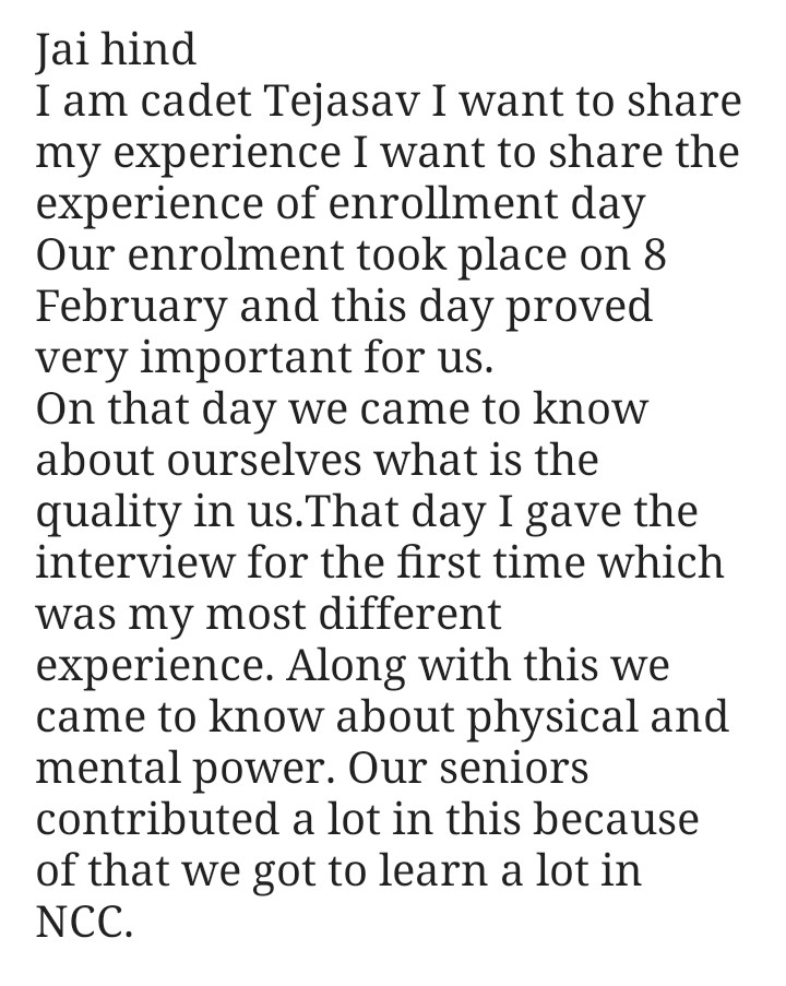 I am Cadet Tejasav from SAC-NCC-4 DBN