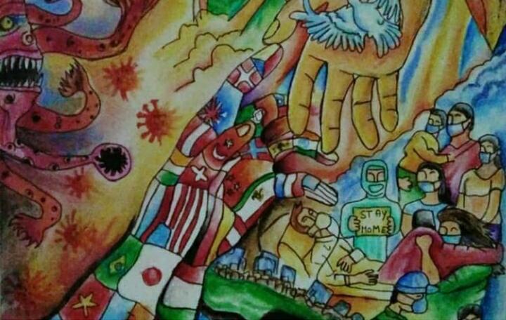 Flt Cdt Neha DL20SWF850355 2DGAS Daulat ram college Above - Sketch on Pandemic Situation.