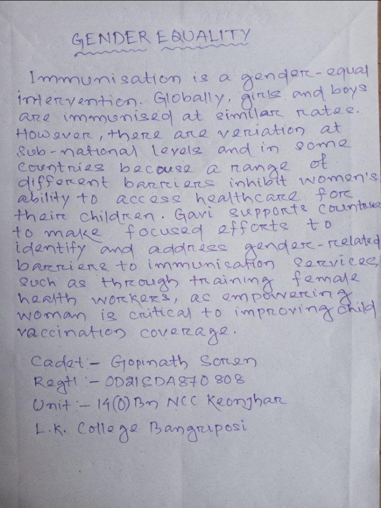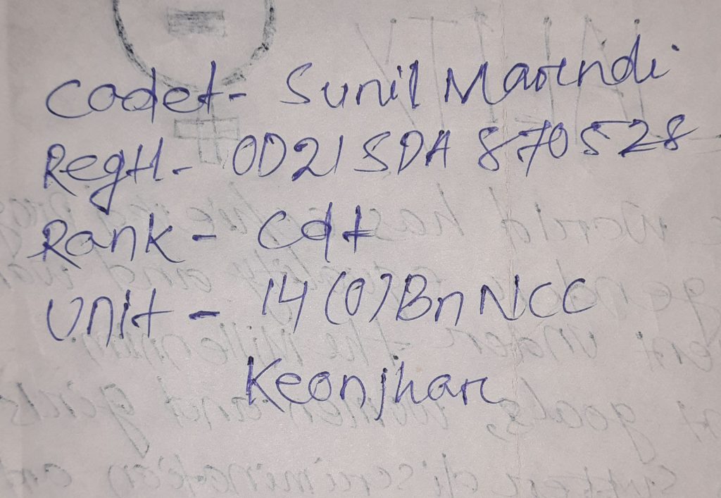 Cadet :- GOPINATH SOREN Redg :-OD21SDA870808 14(O)Bn NCC KEONJHAR L.K. College Bangriposi