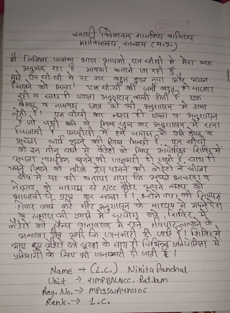 I am Flt Cdt Kiran Saxena of 2 Delhi Girls Air Squadron of regimental number DL20SWF850352 of NCC delhi .