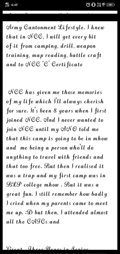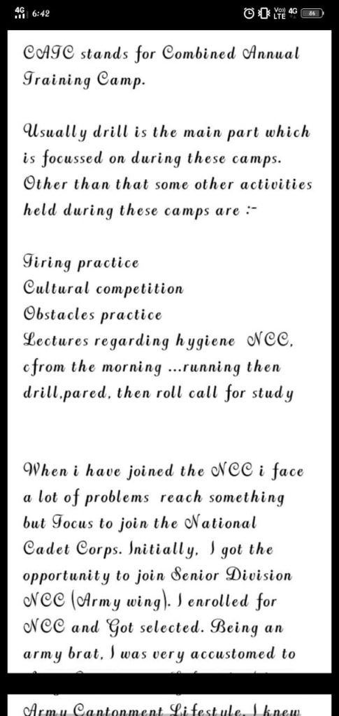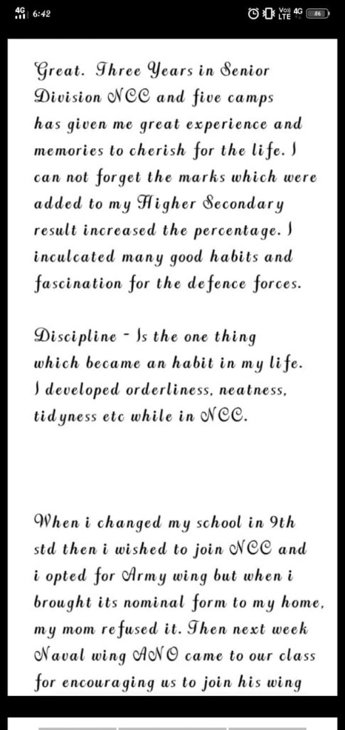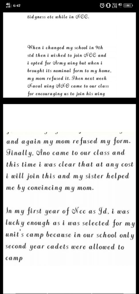 I am Cadet A. Sai Teja Goud from 1T Naval unit and the document is about my journey to join NCC.