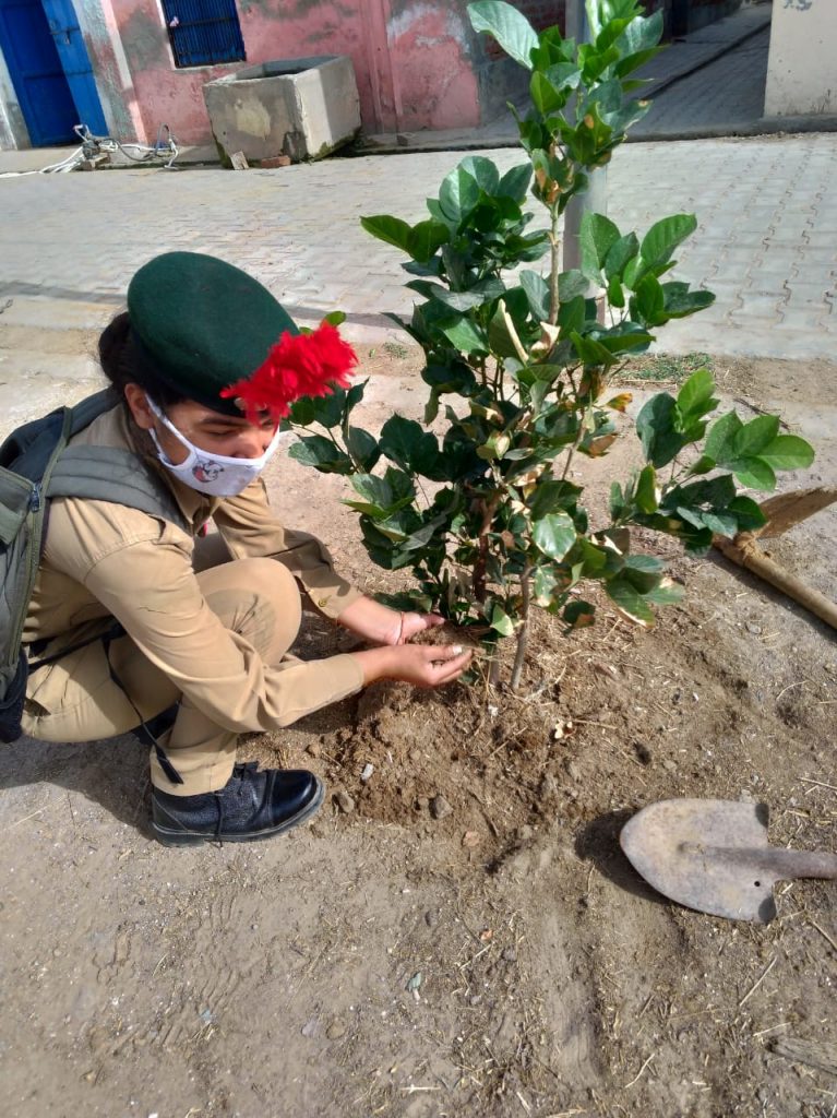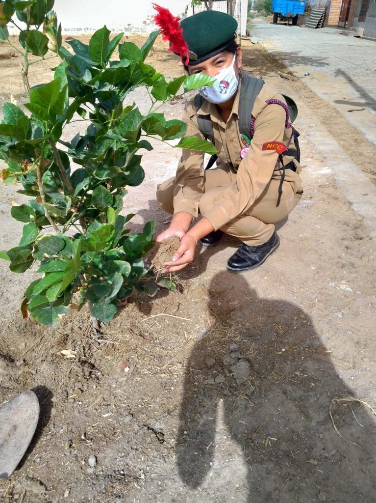 As an NCC cadet serving the nation by planting new plants and watering trees nearby. Save earth...Plant more tress