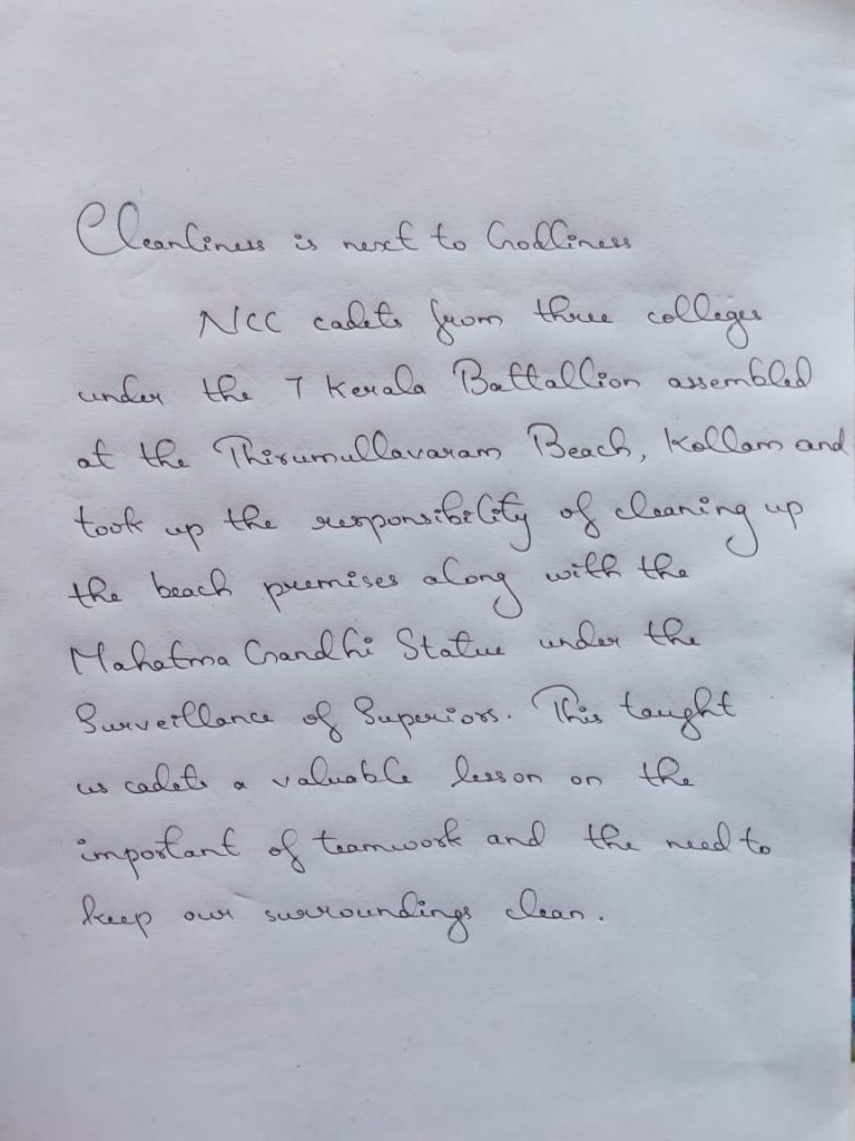 Bini. A ,7 kerala bn ncc, kollam group , Kerala and lakshadweep directorate