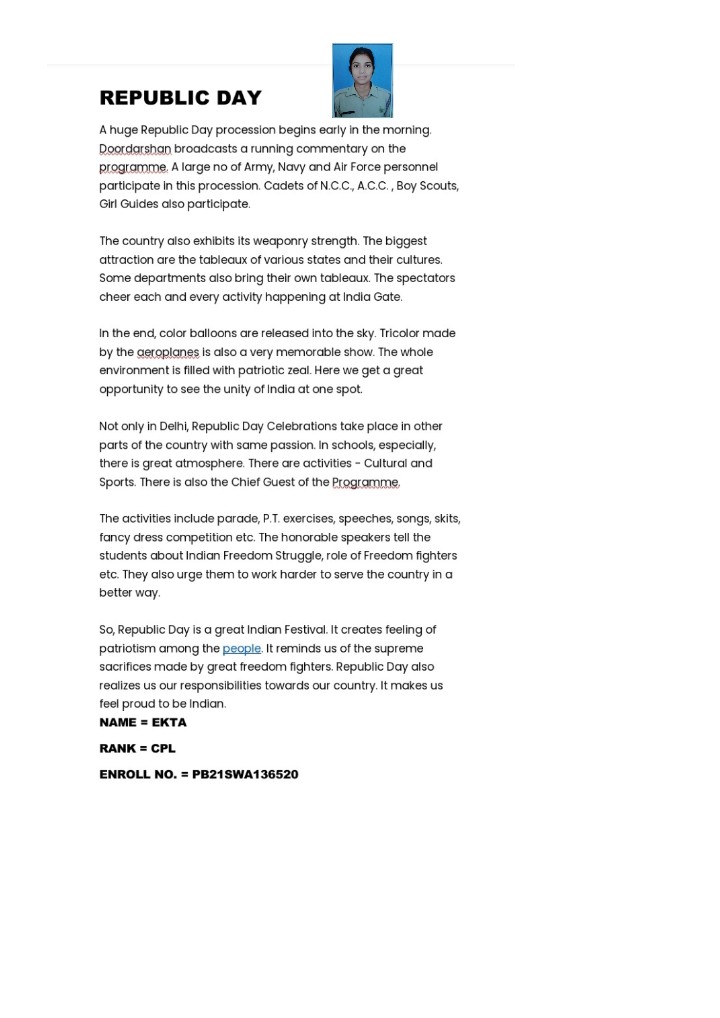 I am SGT Neha C from Govt. Brennen College,1KER ARTY BTY NCC, Calicut group ,Kerala & Lakshadweep directorate