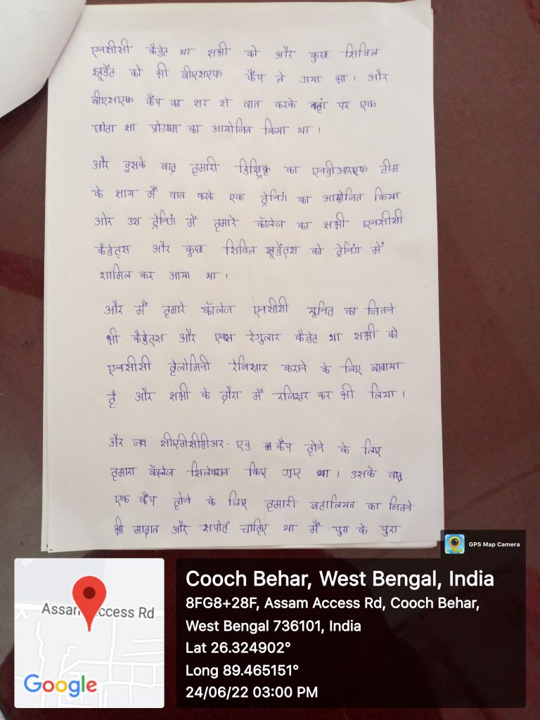 Detailed paper/feedback on Puneet Sagar project by Sgt AK Jha of 8 Bihar Bn NCC Darbhanga, Bihar