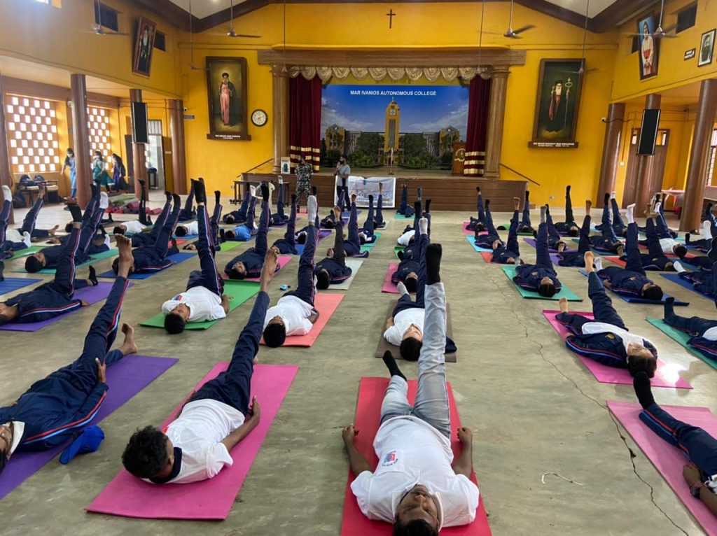NCC cadets doing different yoga poses on the International Yoga Day GHOOM JOREBUNGLOW COLLEGE, DARJEELING. 5 BENGAL BATTALION,DARJEELING WB&SIKKIM DIRECTORATE 21/06/2022
