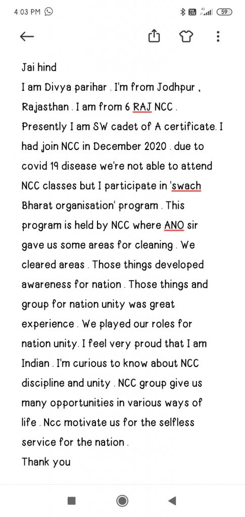 I am a ncc cadet of 33 mp bn and i liked this idea of our government to interact with ncc cadet of all over the country with this portal.
