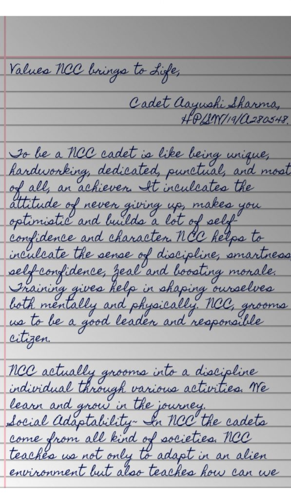 Cadet Aayushi Sharma, HP/SW/19/A280548
