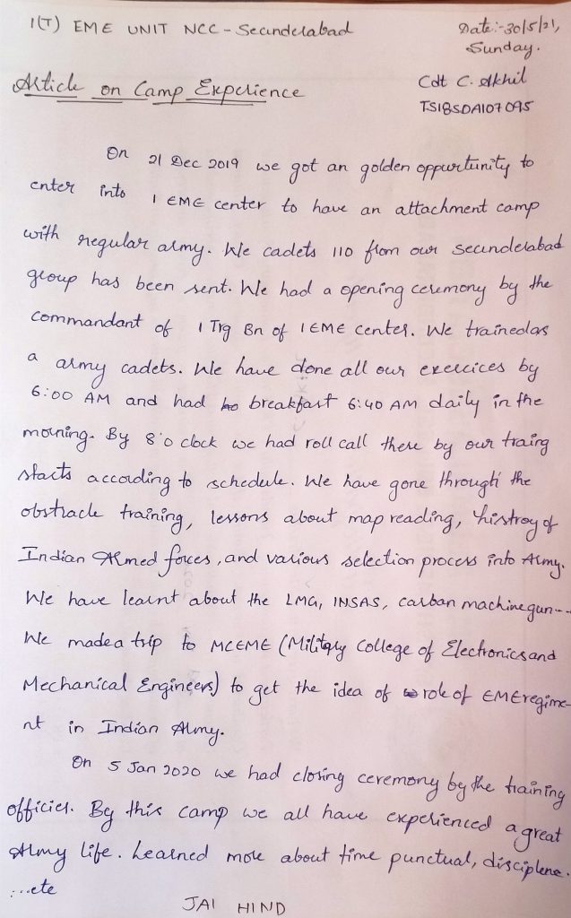 Cdt C.Akhil (SD) 1(T) EME UNIT NCC SECUNDERABAD