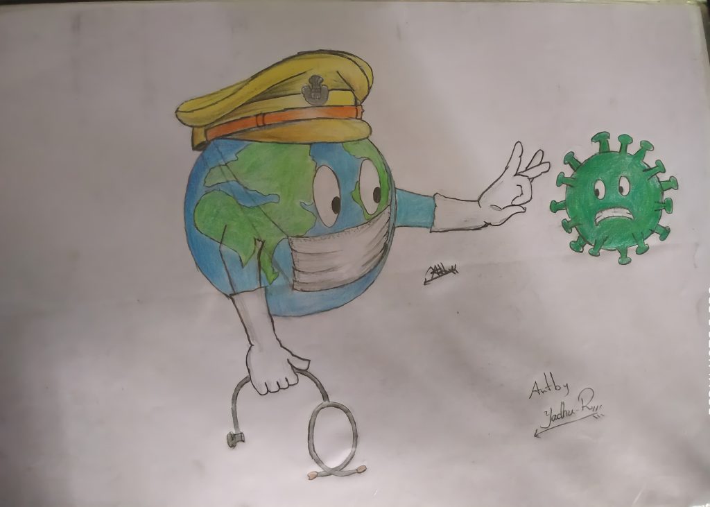 Painting is made by me itself PRACHI( ncc cadets ) this Painting shows how are super heroes like doctor police army officers I mean Indian army and some NGO come outside and help us .