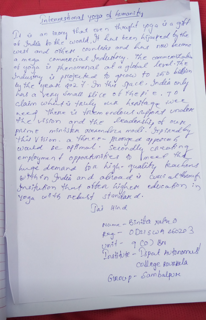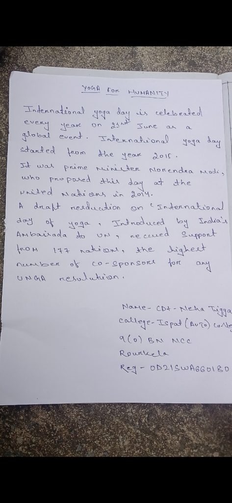 CDT Neha Tigga Ispat autonomous college Rourkela Reg- OD21SWA660180 9(O) BN NCC