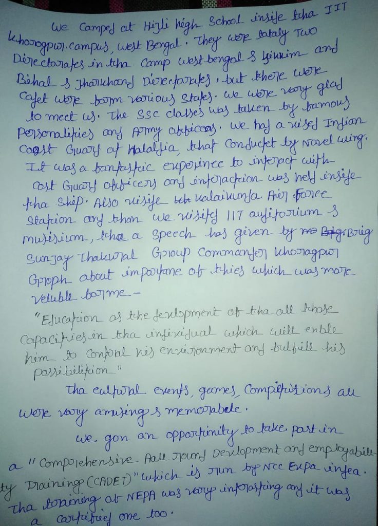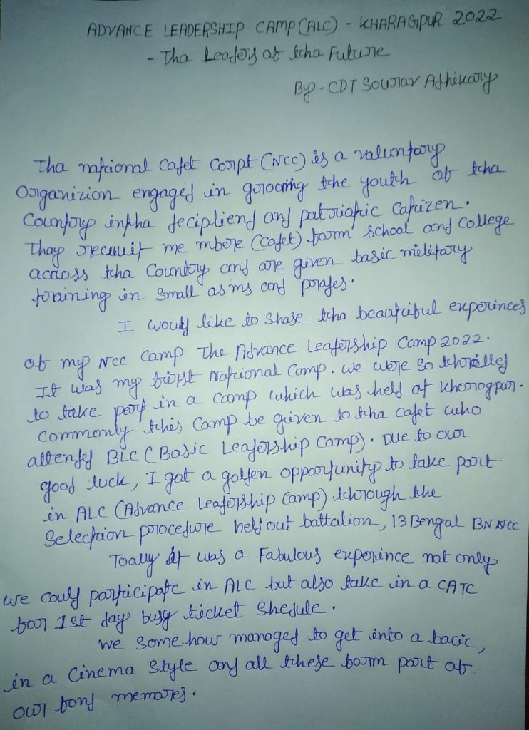 Saikat Ghosh WB20SDA103232 rank: cadet Unit:2 bengal BN NCC