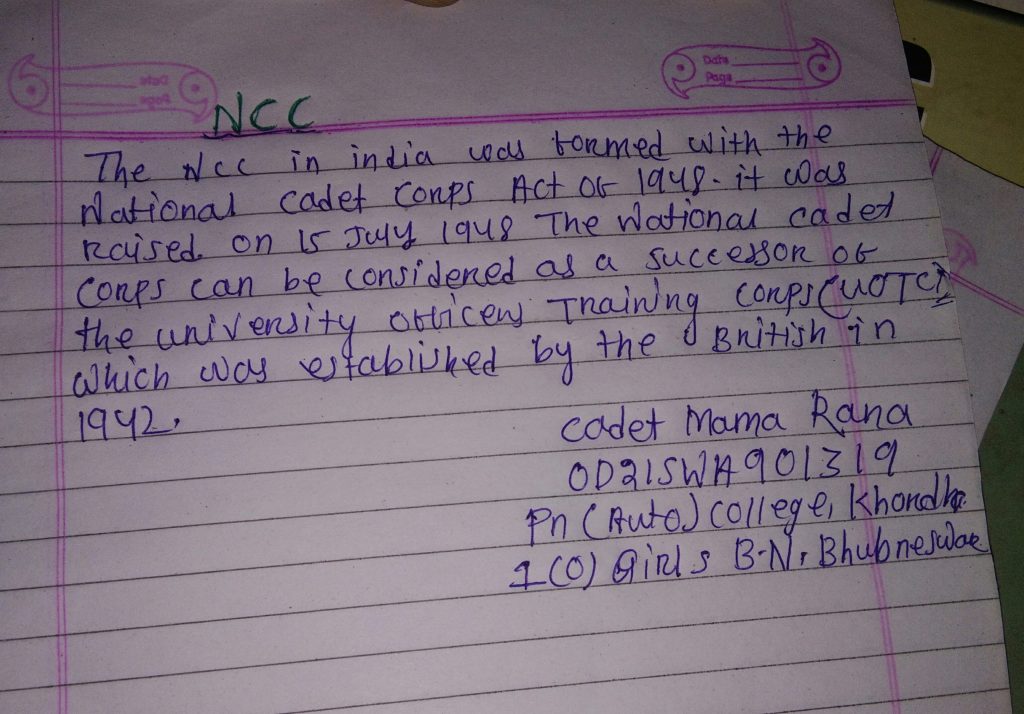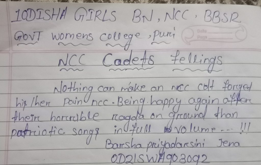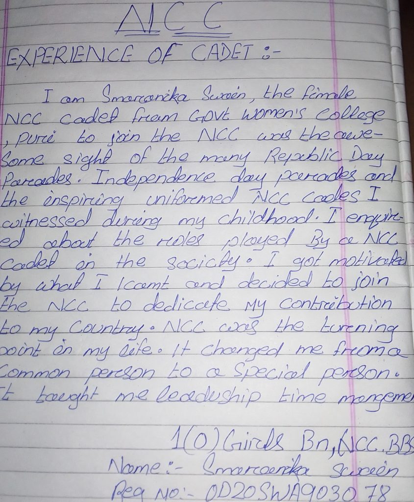 Banki Autonomous college Banki Cadet Anisha mohapatra OD20SWA900496