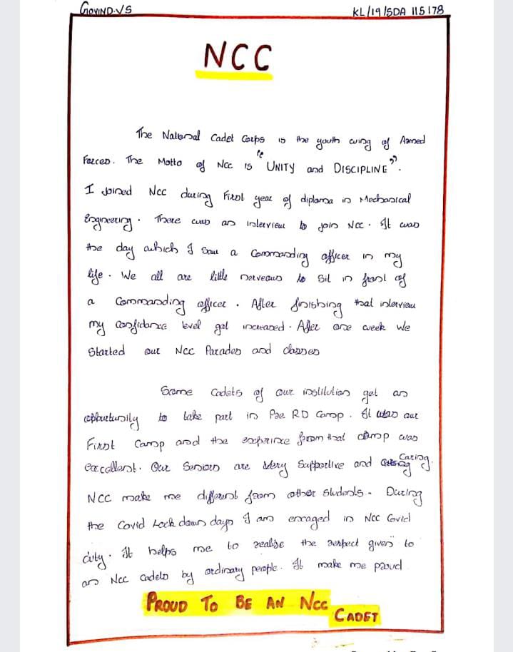 I JUO P. Lakshmi Bhavani with reg no. 155648 under 15/3coy ,3(T) Bn.NCC, Hyderabad group, AP&T DTE.