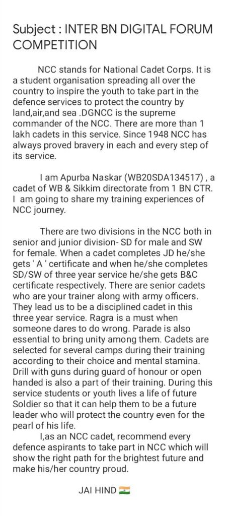 I am Cadet Yash Jain from 2 MP naval unit ,jabalpur(MP). JAI HIND