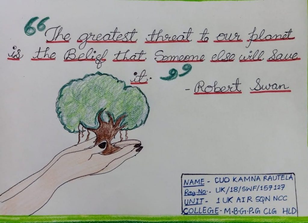 A poster on World environment day by CUO Kamna Rautela of 1UK Air Sqn NCC Pantnagar Sub unit- MBGPG College Haldwani