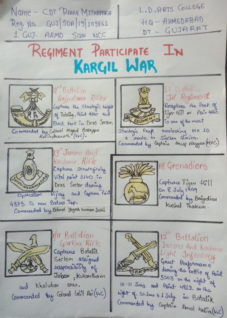 In this poster I write about some regiments of Indian Army who captured some areas in the Kargil War