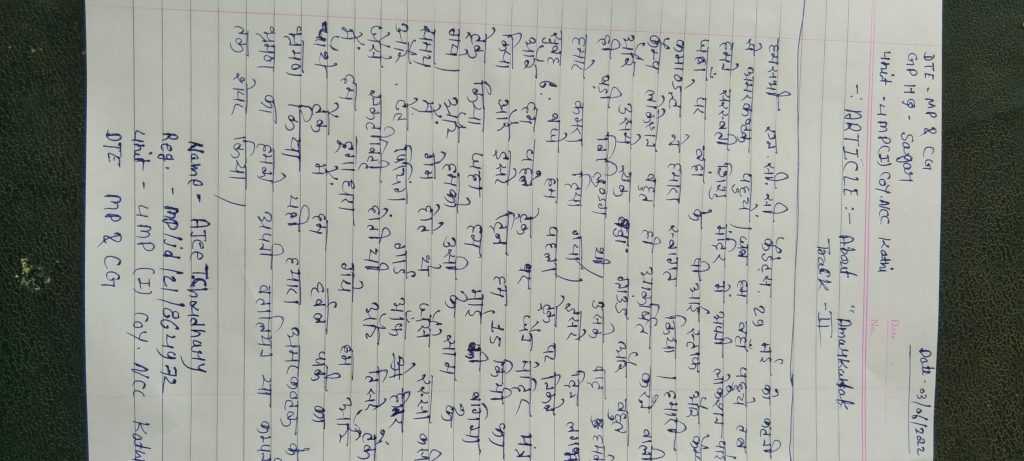 Cadet Pranati sarangi Enrollment no-OD21SWA668014 Municipal college rourkela Unit -9(O) BN NCC Rourkela Odisha directrate Sambalpur group
