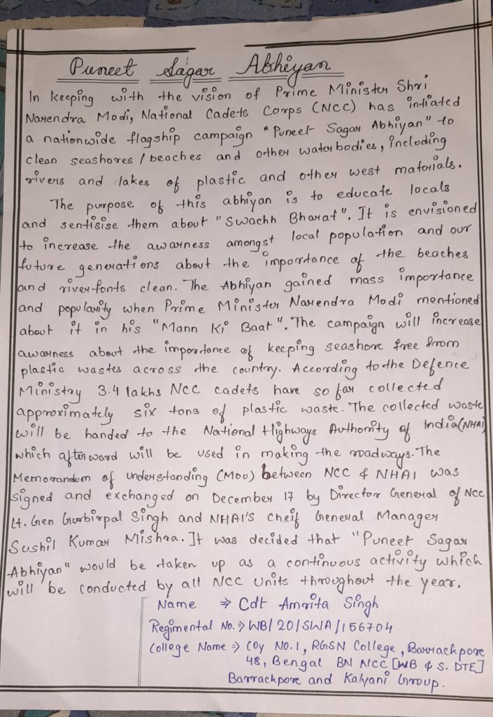 I am a CADET in RGSN COLLEGE, BARRACKPORE,WB.