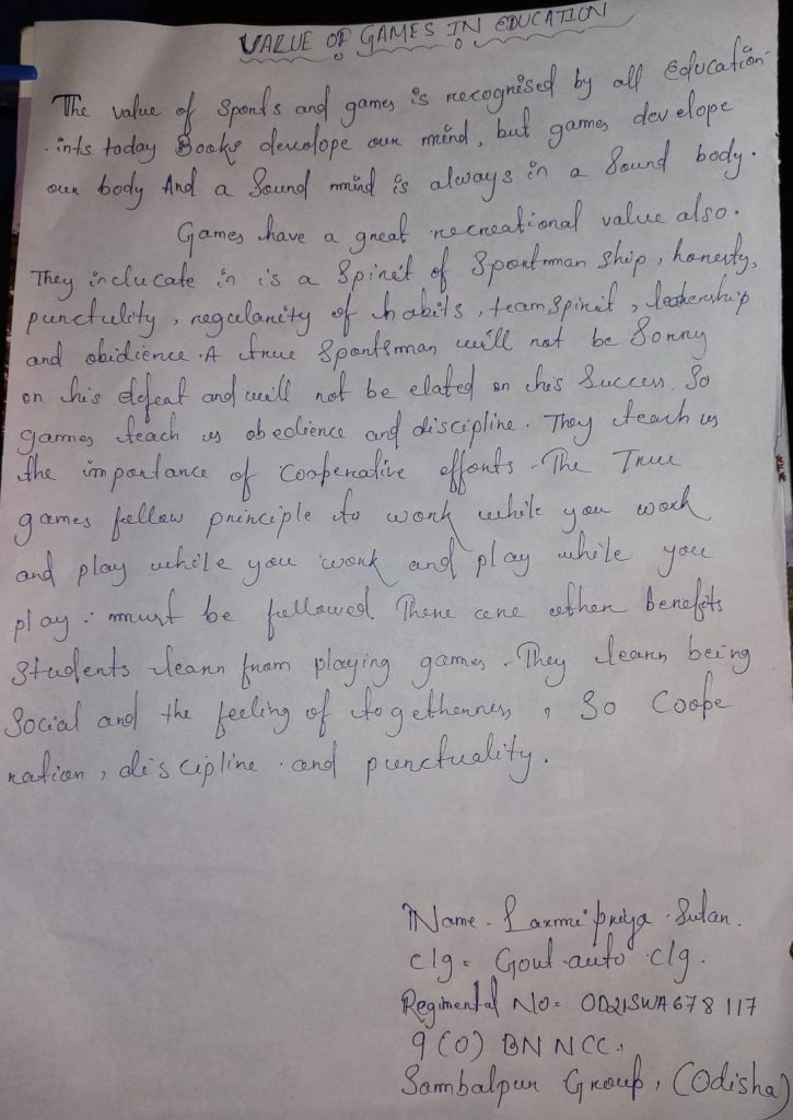 Cadet - Sruti barla Regt no-. OD20SWA678080 Govt autonomous college Rourkela