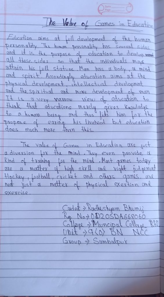 Cadet-Radhe shyam Bhumij Reg no-OD20SDA668060 Collage - Muncipal college Rourkela