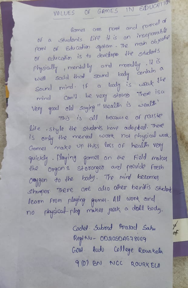 I Cadet Takshyasheela Bagh Regt no-OD21 SWA 678164 9(O) BN NCC, RKL Government Autonomous College, Rourkela