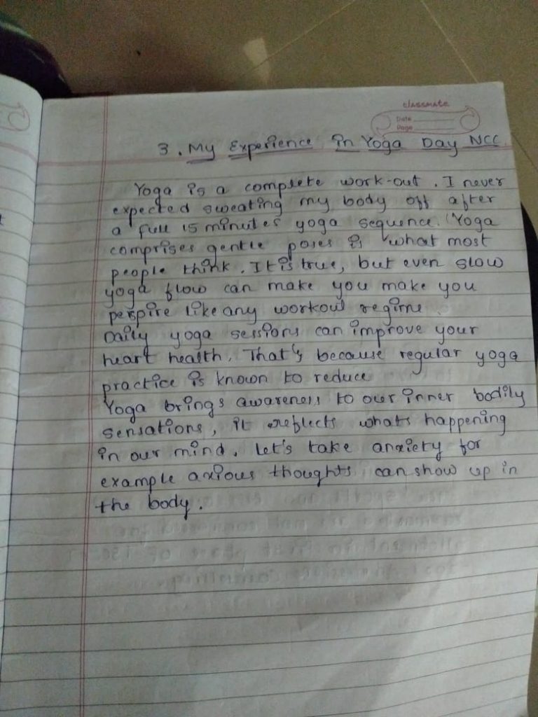 Name: Keerti S Bhovi Topic: my experience in Yoga Day KA21SWA552106 GFGC Honnavar