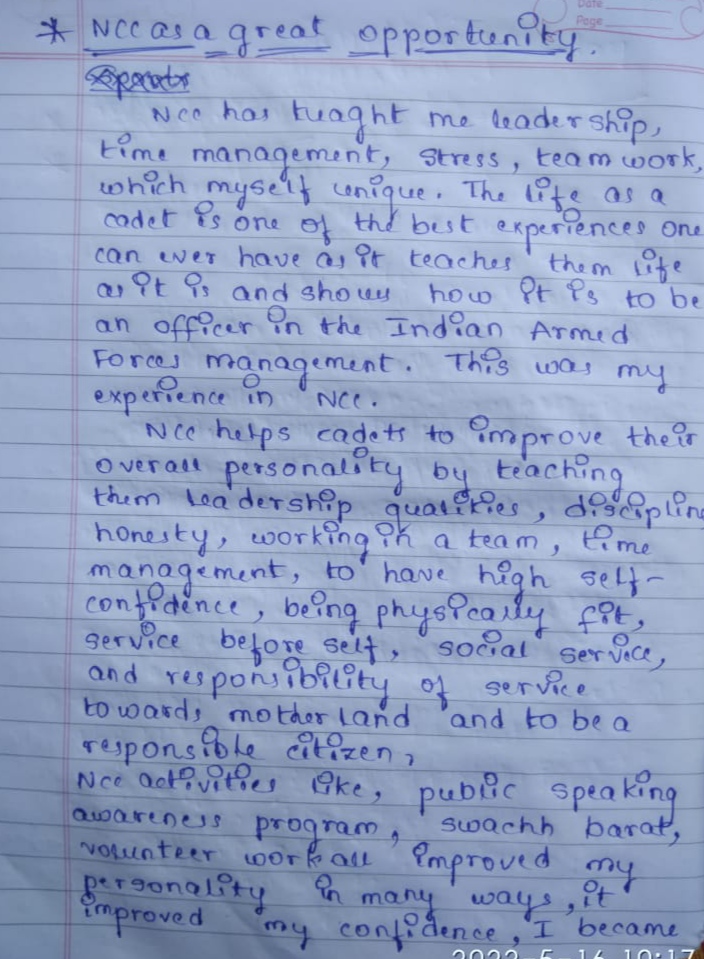 Topic: NCC as a great opportunity. Name: Keerti S Bhovi KA21SWA552106 GFGC Honnavara