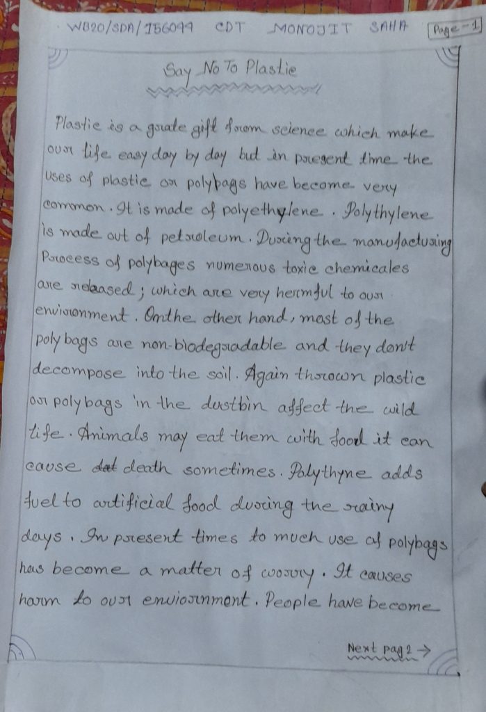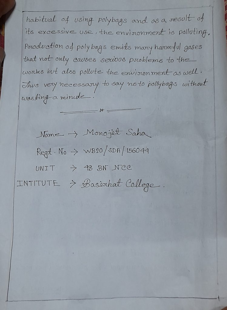 Say no to plastic ,WB20SDA 156044 CDT MONOJIT SAHA ,GROUP KALYANI ,UNIT 48 BN NCC ,BASIRHAT COLLEGE