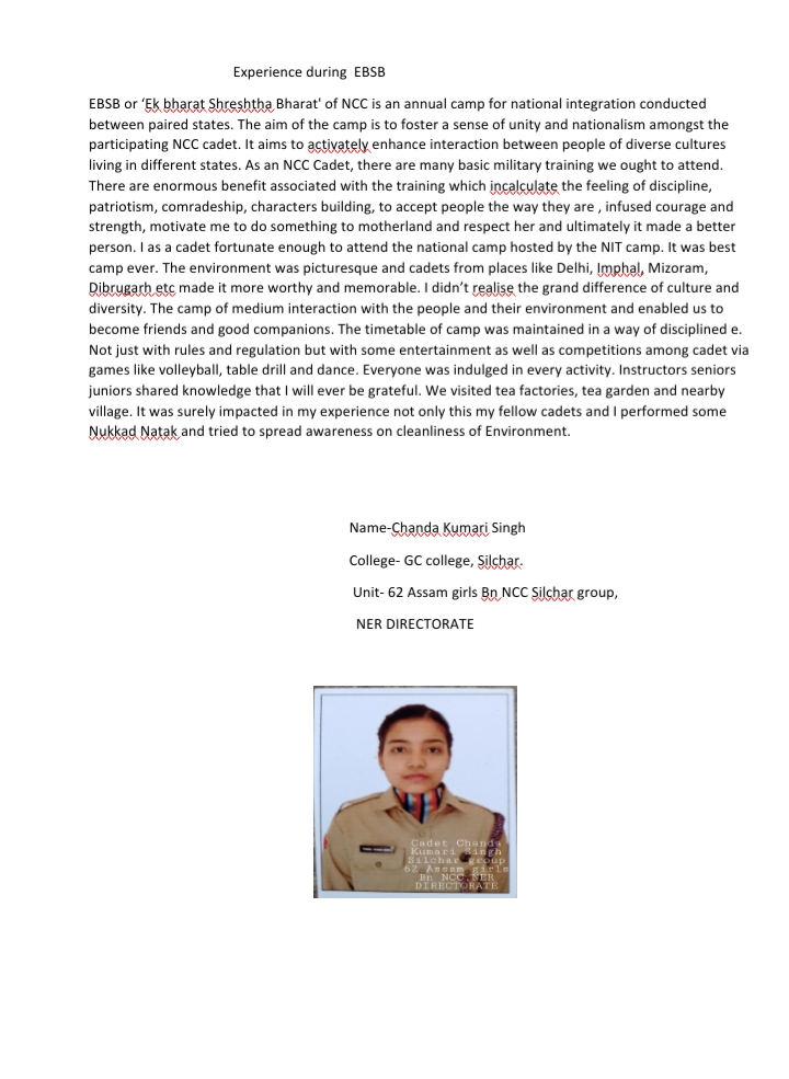 I cadet chanda kumari singh from 62 Assam girls Bn NCC Silchar NER Directorate