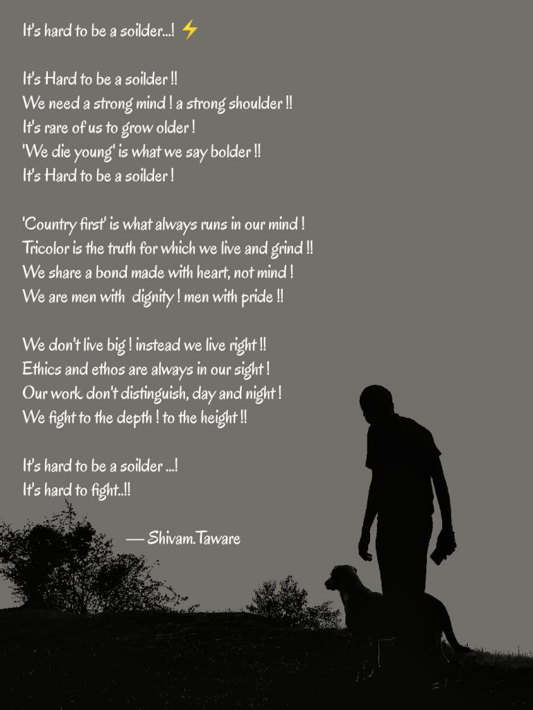 Name - CDT Shivam Taware Regt no. - MAH/SD/19/A/705651 Poem - It's hard to be a SOILDER..!⚡ Self written.