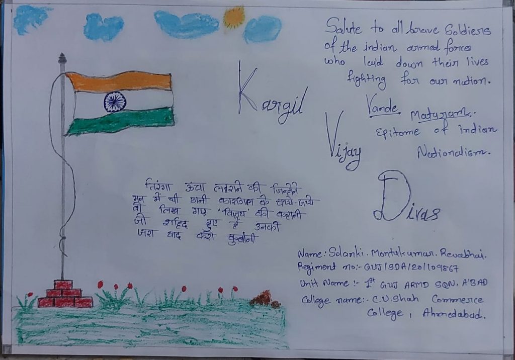 NAME:-Solanki Montukumar Revabhai Regiments No:-GUJ/SDA/20/109867 Unit:-1 GUJ ARMD SQN NCC GUJRAT DIRECTORY i drawed drawing about vijay kargil day.