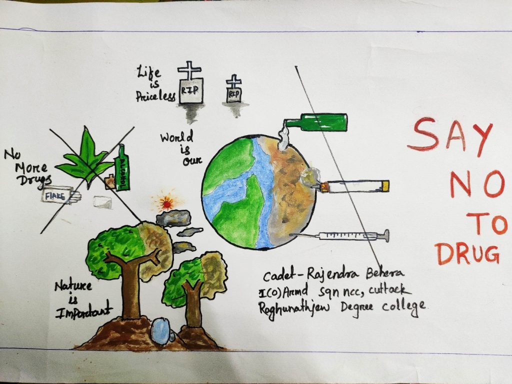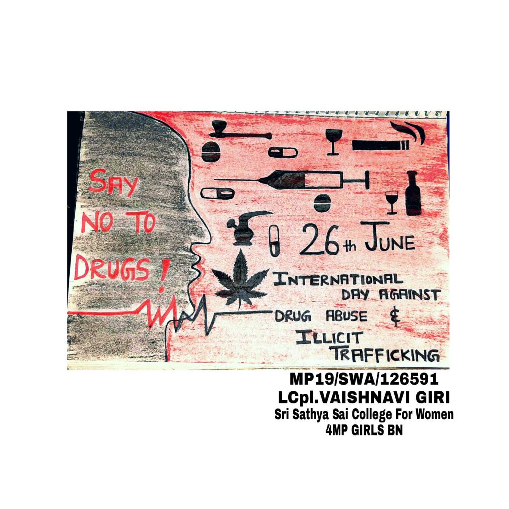 I am NCC Cadet of 4MP GIRLS BN and I am making a poster on International Day Against Drug Abuse and Illicit Trafficking