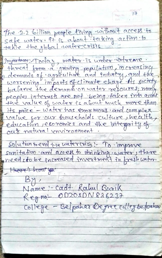 I cdt Mukesh kaharsel OD20SDN836229 Belpahar degree college I have complete world Water day rally