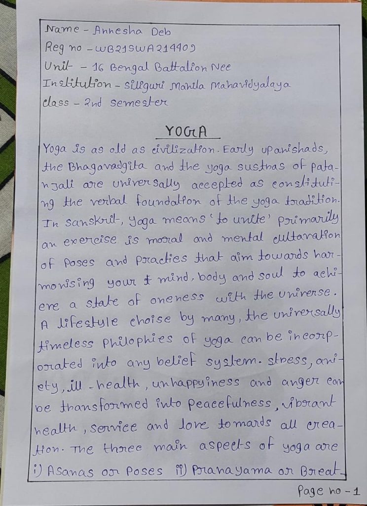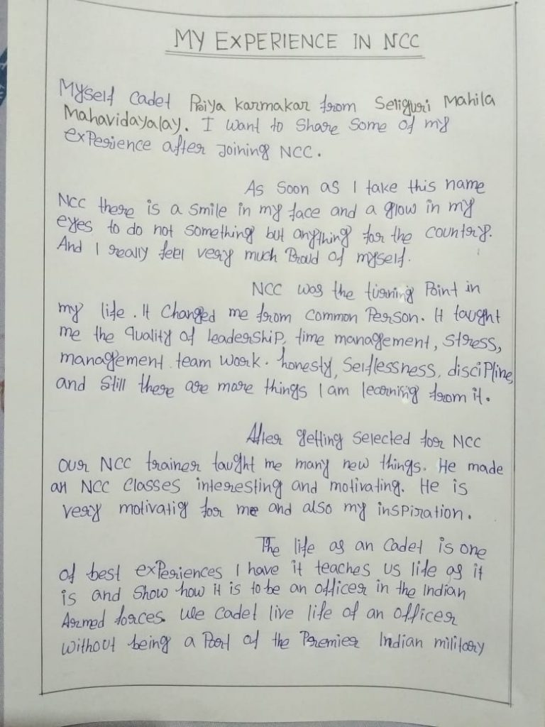 WB20SWA223183 cadet priya karmakar 3rd year cadet from siliguri mahila mahabidyalaya